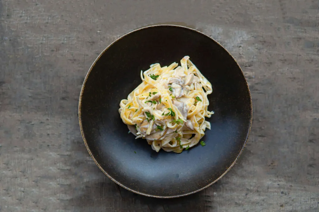 - If the sauce needs loosening up, add a bit of that pasta water. Plate up the pasta, spoon over the creamy chicken and mushroom goodness, and sprinkle with parsley and Parmesan if you’re feeling fancy.